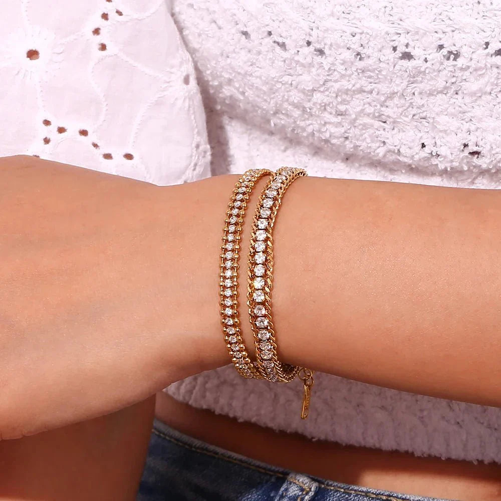 • Material: Crafted from high-quality 18k gold plated stainless steel, this bracelet ensures durability and a lasting shine. The 18k gold plating enhances the bracelet's luxurious appeal, while the brilliant diamonds add a dazzling effect.