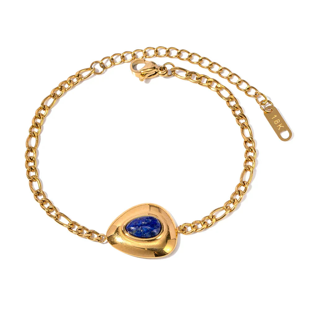• Material: Meticulously crafted from 18k gold plated 316L stainless steel, this bracelet is hypoallergenic, tarnish-resistant, and designed for lasting durability and shine. The lapis lazuli, known for its rich blue hue, adds a luxurious touch that complements the radiant gold finish, making this bracelet a standout piece in any collection.
