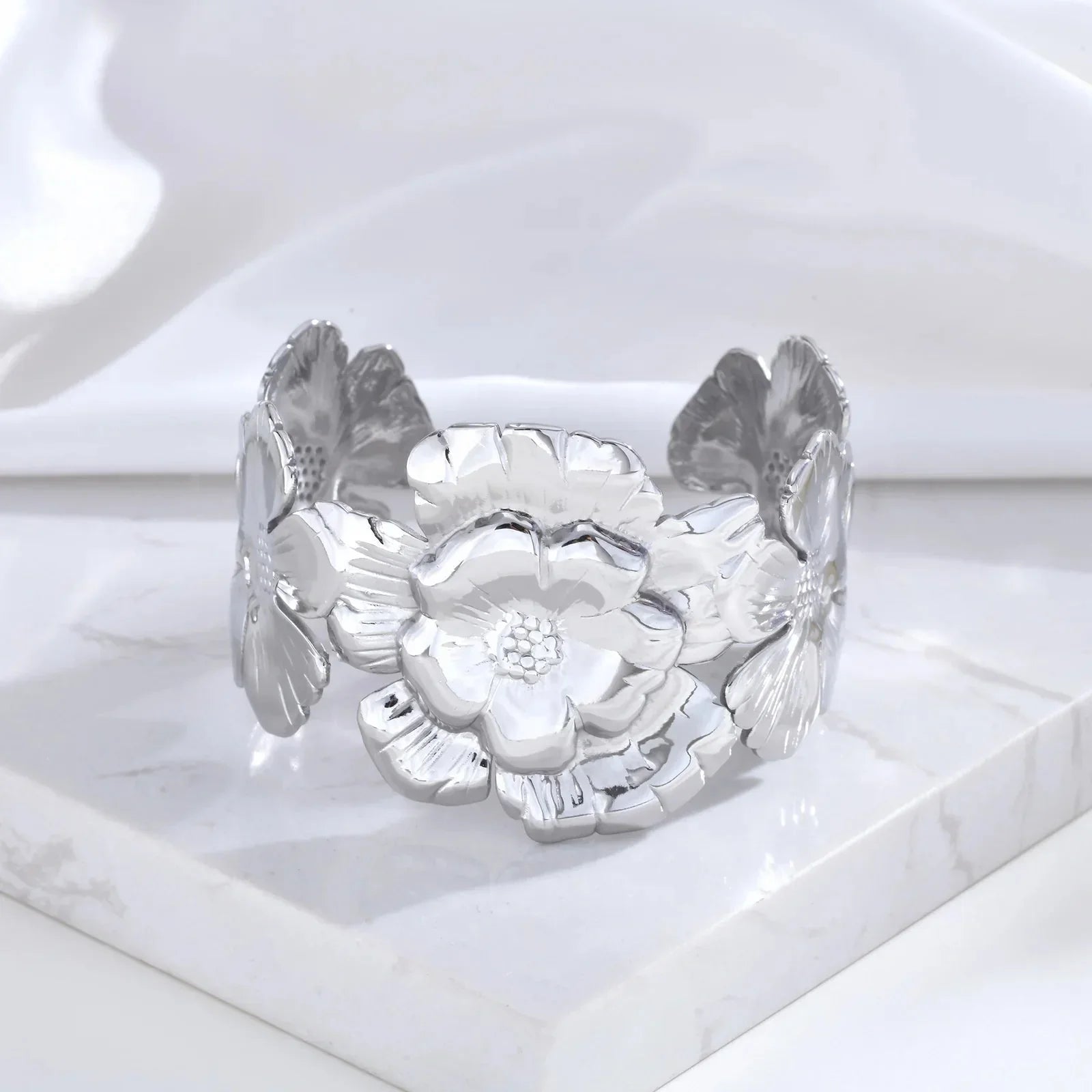 Oak & Aura's 18k Floral Cuff Bangle Bracelets are more than just accessories; they are statements of elegance and sophistication. Whether worn for a special occasion or to elevate your everyday attire, these bracelets promise to enhance your look with their refined design and captivating beauty. Treat yourself or someone special to these beautifully crafted pieces and embrace the timeless charm of floral jewelry.