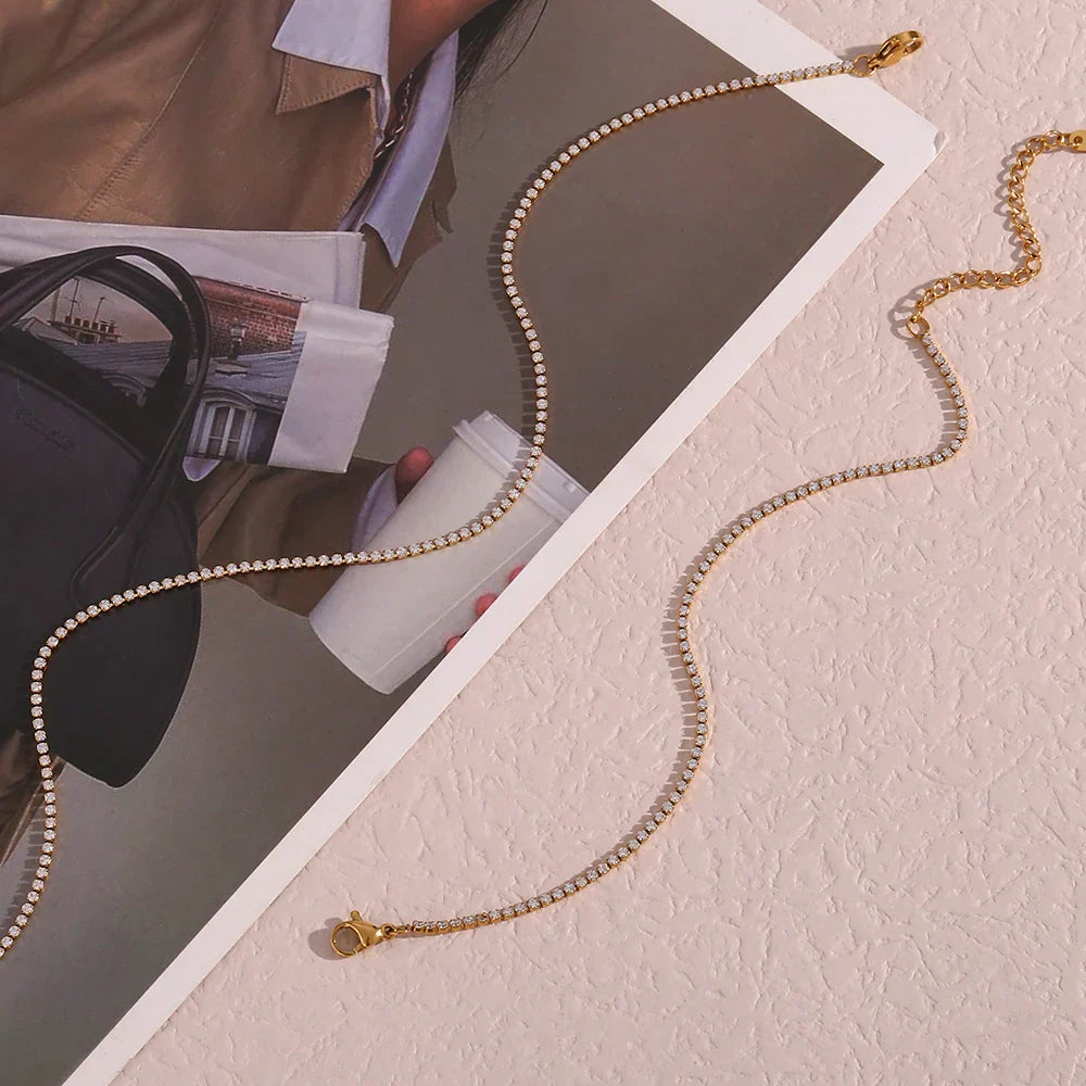 2mm Dainty Tennis Chain Bracelet and Necklace