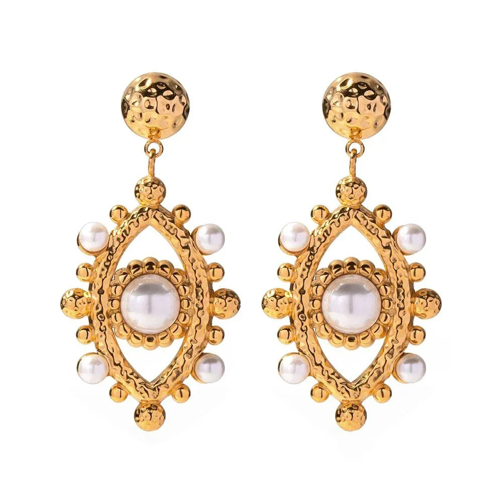 Add a touch of bohemian charm with Oak & Aura's 18k Boho Evil Eye Bead Accented Earrings, where elegance meets protection.