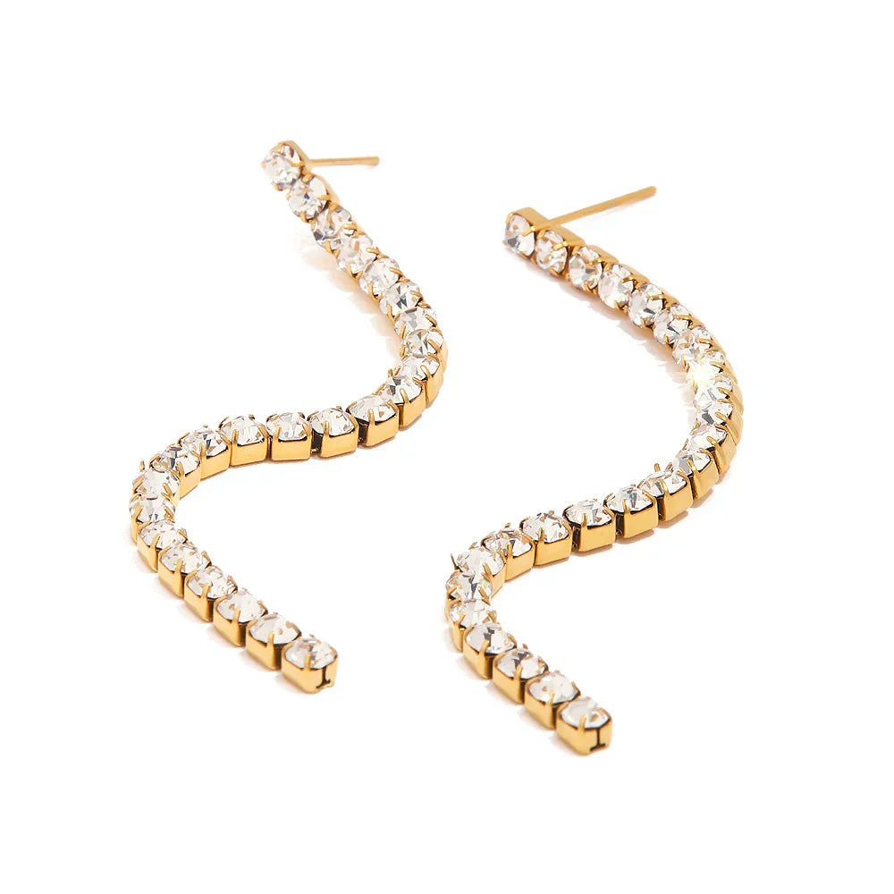 • Style: These diamond tennis earrings feature a delicate golden tassel with staggered diamonds flowing down, creating a gorgeous and elegant look. The staggered arrangement of the diamonds adds movement and sparkle, making these earrings perfect for special occasions or adding a touch of glam to everyday outfits.