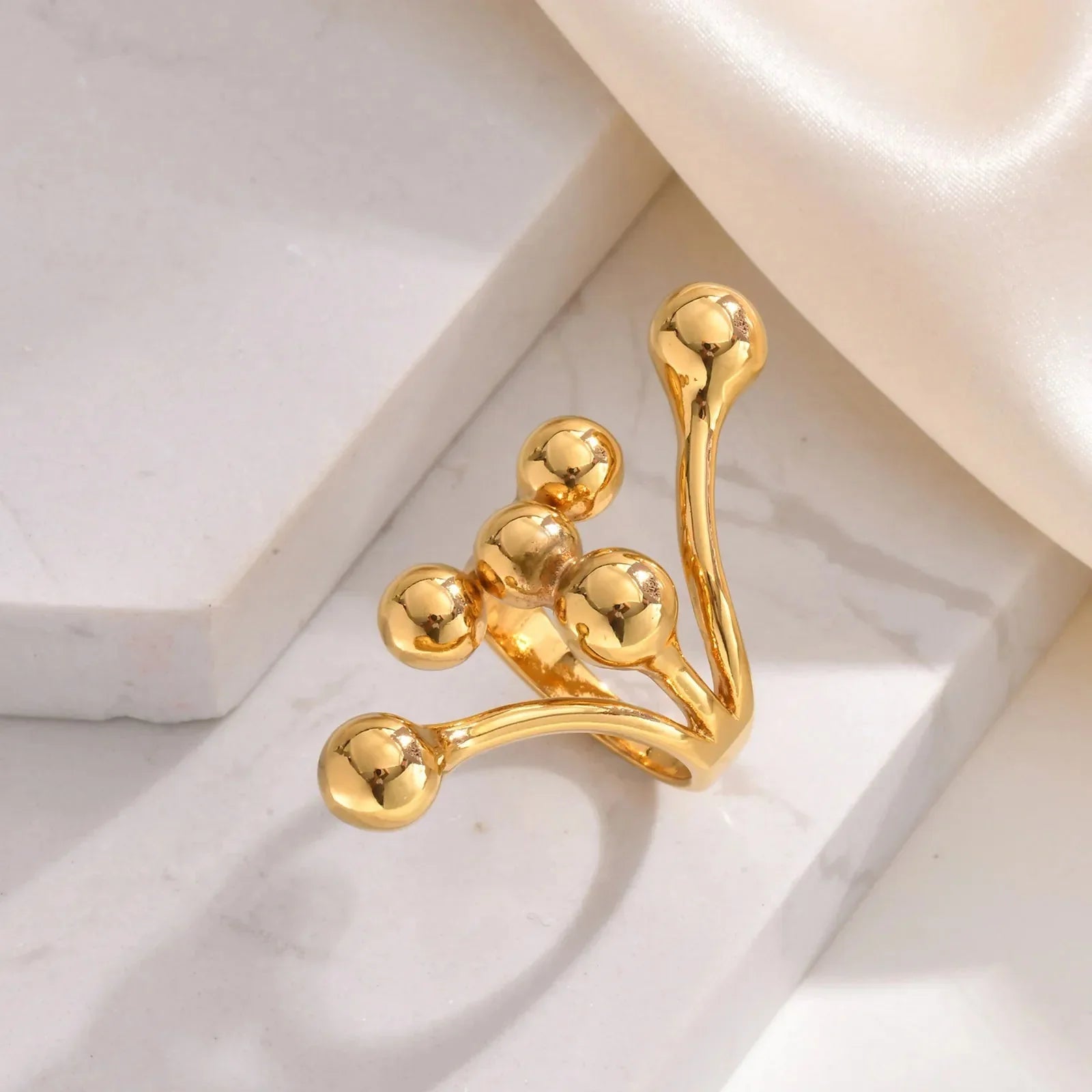 18k Bold Layered Ball Wrap Ring